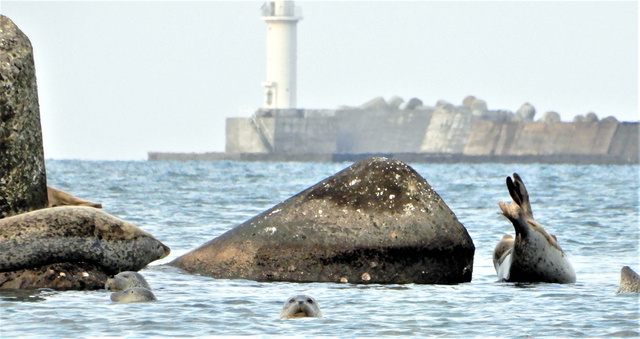 雖然北海道稚內市的拔海港作為能看到斑海豹的地方非常有名,但苫前町至留萌市的232號國道沿線因為能夠清晰地看到斑海豹更是成為人氣景點。特別是留萌市鹽見近海的斑海豹特別多,在這個季節已經有20-30頭斑海豹悠閑地趴在消波塊上休息。當海上起風浪的時候,留萌港內似乎是個非常好的休憩場所。