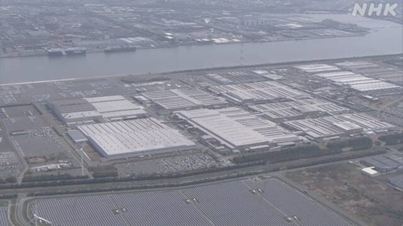 豐田汽車暫停日本國內兩家工廠的部分“雷克薩斯”生產線。(NHK電視臺視頻截圖)