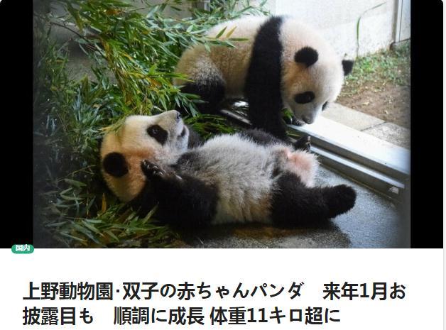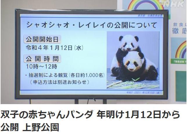 出生于日本東京上野動物園的雙胞胎大熊貓“曉曉”與“蕾蕾”,將于2022年1月12日起,正式與游客見面。圖片來源:日本放送協會(NHK)報道截圖