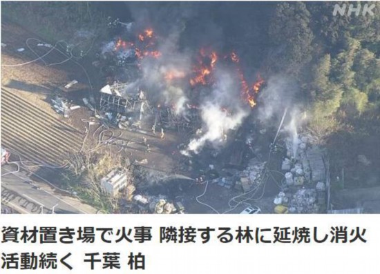 中新網12月13日電 據日媒報道,當地時間13日下午,日本千葉縣一材料堆放場發生火災,且已蔓延至鄰近樹林。目前暫無人員傷亡報告。