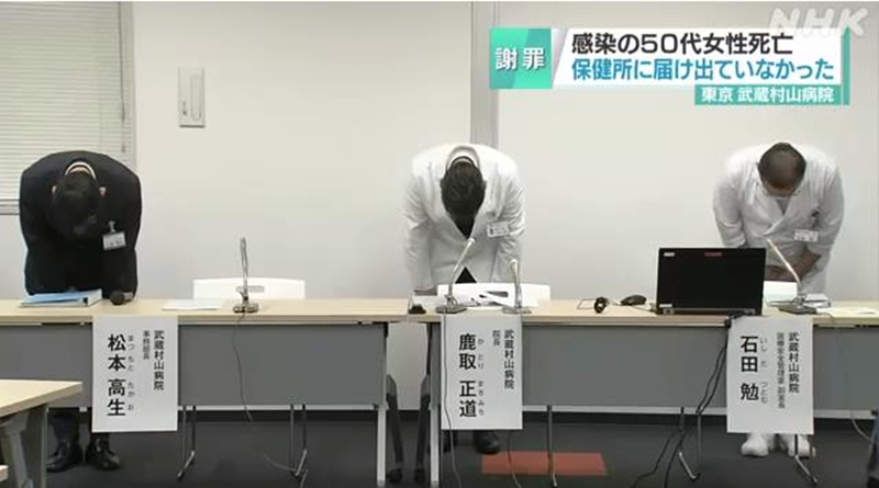 人民網東京12月16日電(李沐航)據NHK電視臺報道,今年8月,日本東京都武藏村山市的武藏村山醫院曾遺漏一名女性新冠患者的確診信息,導致該患者未被納入到保健所健康監測對象中,致使其在確診8天后死于家中。該醫院相關負責人12月14日就此事件召開新聞發布會并向公眾致歉。