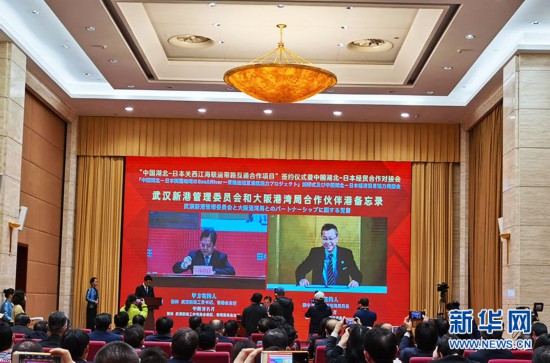 湖北省人民政府與日本國際貿易促進協會當日正式簽署《中國湖北—日本關西江海聯運帶路互通合作協議》,一批鄂企與日企就物流和貿易合作簽訂合作協議。日本貿易振興機構、本田、豐田、永旺、三井、三菱等日本重點商協會和企業代表近300人在武漢參加活動。