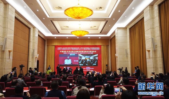 圖為12月16日,“中國湖北-日本關西江海聯運帶路互通合作項目”簽約儀式暨中國湖北-日本經貿合作對接會武漢會場。 新華網余凌云攝