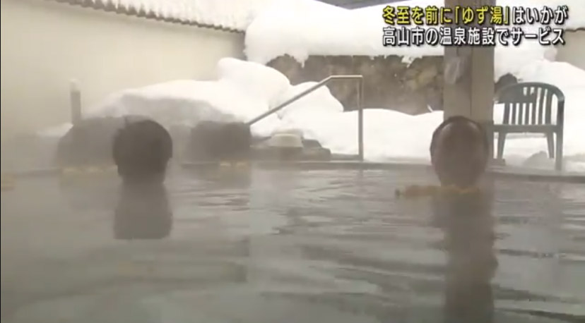 12月20日,溫泉浴池中被投入10公斤的高知縣產柚子。剛一開門營業,就有很多當地人登門,一邊欣賞雪景一邊泡著“柚子溫泉浴”放松身心。(編譯:陳建軍)