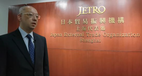 日本貿易振興機構(JETRO)上海代表處首席代表水田賢治接受新華社記者采訪。新華社記者 陳愛平 攝