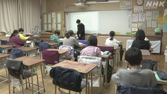 東京都新宿區部分小學改為分批授課。(NHK電視臺視頻截圖)