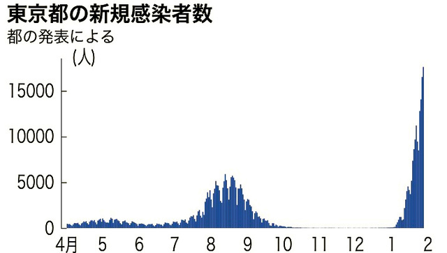 29日,東京都新增確診病例1萬7433例,僅次于前一天創下的最高紀錄。截至1月29日,東京都最近一周的日均新增確診病例數為1萬3781.7例,是前一周的192.9%。
