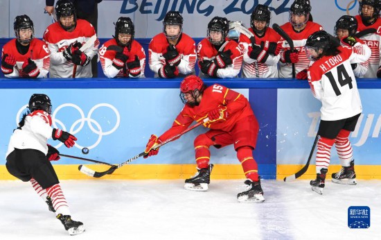 當日,在五棵松體育中心舉行的北京2022年冬奧會女子冰球小組賽中,中國隊以2比1戰勝日本隊。