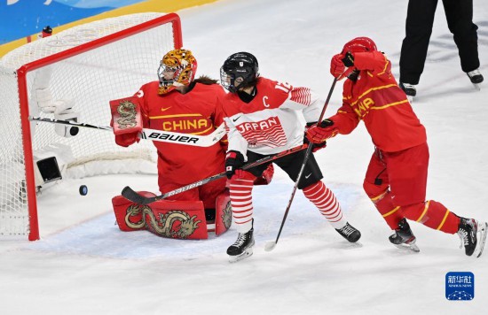 當日,在五棵松體育中心舉行的北京2022年冬奧會女子冰球小組賽中,中國隊以2比1戰勝日本隊。