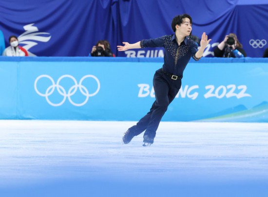 2月8日,日本選手鍵山優真在比賽中。新華社記者張玉薇攝