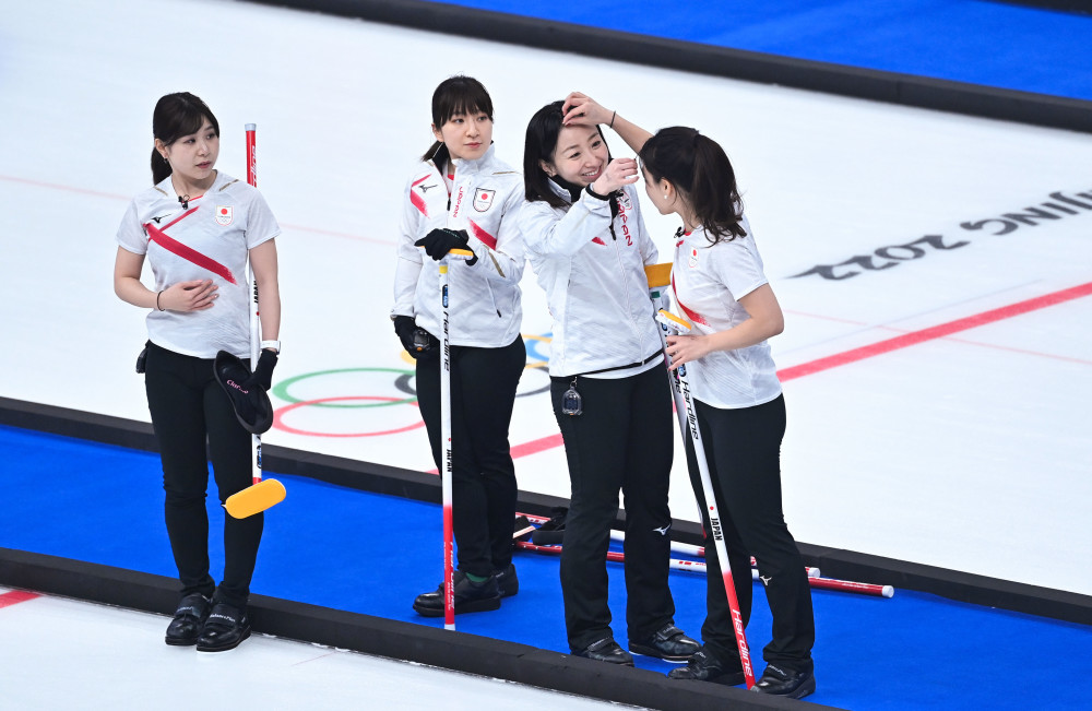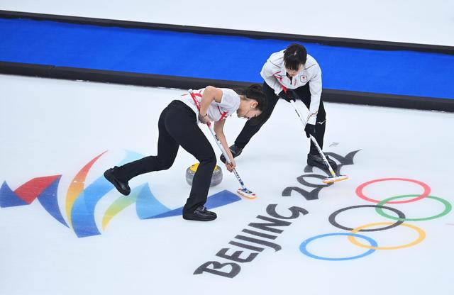 2月12日,在北京國家游泳中心“冰立方”舉行的北京2022年冬奧會女子冰壺循環賽中,日本隊以10比5戰勝俄羅斯奧委會隊。