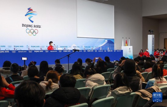 當日,日本花樣滑冰運動員羽生結弦在北京冬奧會主新聞中心舉行新聞發布會。