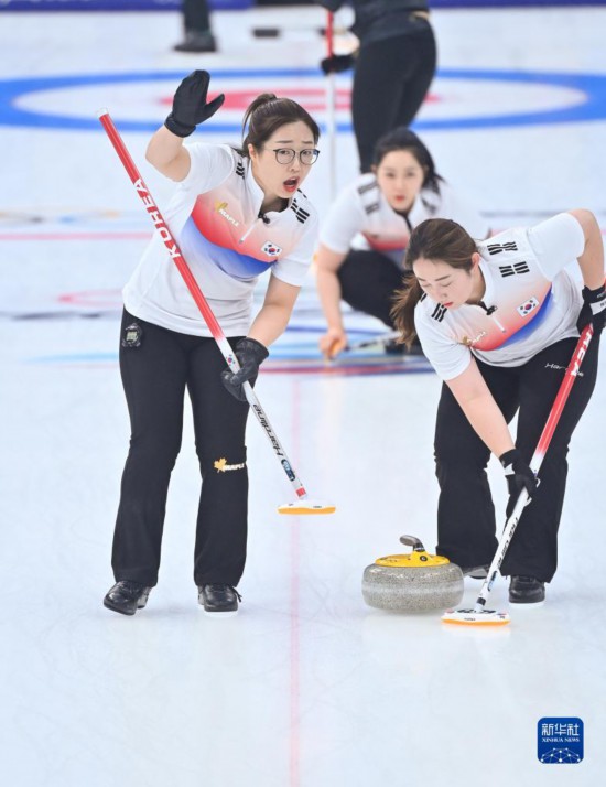當日,在北京國家游泳中心“冰立方”舉行的北京2022年冬奧會女子冰壺循環賽中,韓國隊以10比5戰勝日本隊。