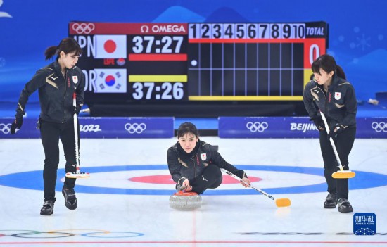 當日,在北京國家游泳中心“冰立方”舉行的北京2022年冬奧會女子冰壺循環賽中,韓國隊以10比5戰勝日本隊。