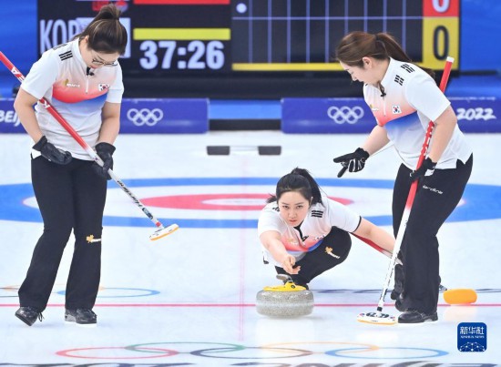 當日,在北京國家游泳中心“冰立方”舉行的北京2022年冬奧會女子冰壺循環賽中,韓國隊以10比5戰勝日本隊。