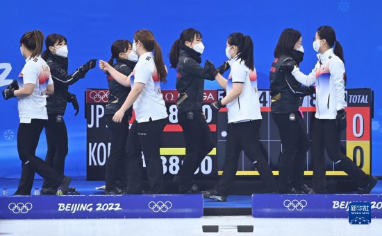 當日,在北京國家游泳中心“冰立方”舉行的北京2022年冬奧會女子冰壺循環賽中,韓國隊以10比5戰勝日本隊。