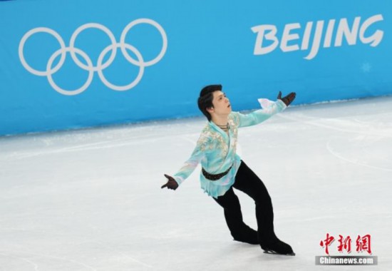 2月10日,北京冬奧會花樣滑冰男子單人滑自由滑比賽中,盡管日本名將羽生結弦在挑戰阿克塞爾四周跳(4A)時未能成功,但他還是完成了整套動作。中新社記者 崔楠 攝