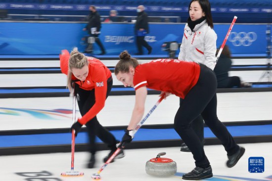 當日,在北京國家游泳中心“冰立方”舉行的北京2022年冬奧會女子冰壺循環賽中,英國隊以10比4戰勝日本隊。