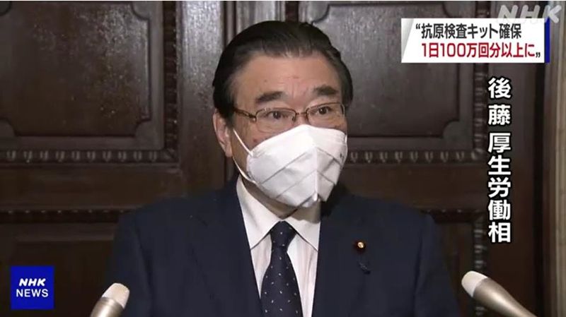 后藤茂之稱,已搭建應對機制,將有購買需求的醫療機構與藥品批發商對接,自18日起開始接受醫療機構的申請,預計從下周起試劑盒供應情況將得到大幅改善。