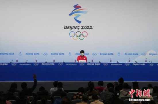 2月14日,羽生結弦在發布會上。當日,日本花樣滑冰運動員羽生結弦在北京冬奧會主新聞中心舉行新聞發布會。 中新社記者 毛建軍 攝