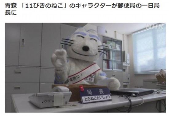 此外,青森縣的一個郵局,也趁著“貓之日”,安排當地繪本作家作品《11只貓》中的角色“虎貓大將”,擔任一日“局長”。