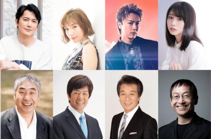 (第一排)福山雅治、仲里依紗、EXILE TAKAHIRO、長濱禰留;(第二排)蛭子能收、高田明、前川清、野田秀樹