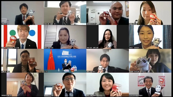 2月23日,中國駐日本大使館與日本青年開展云端對話活動。(圖片為云端對話活動截圖)