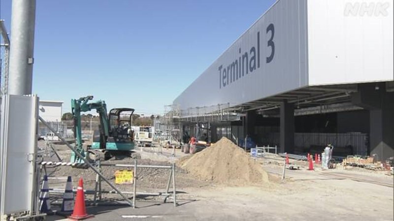 成田國際機場正在擴建第三航站樓的出發大廳。(NHK電視臺視頻截圖)