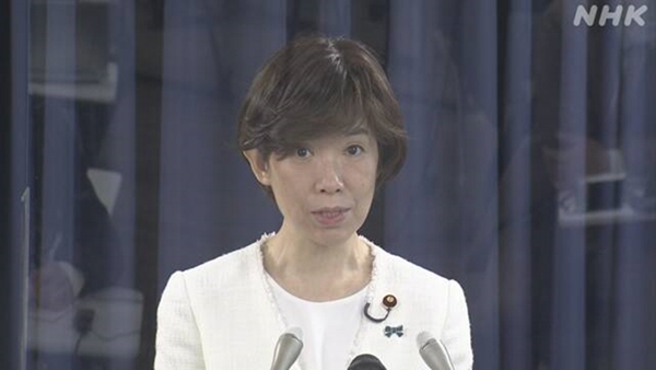 日本新冠疫苗擔當大臣堀內詔子。(NHK電視臺視頻截圖)