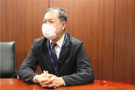 2月21日,國航東京營業部成田航站旅客系長高橋靖弘接受人民網采訪。李沐航攝