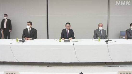 日本首相岸田文雄(中)在首先官邸召開經濟財政咨詢會議。(NHK電視臺視頻截圖)