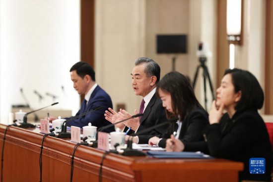 3月7日,十三屆全國人大五次會議在北京人民大會堂新聞發布廳舉行記者會,邀請國務委員兼外交部長王毅就“中國外交政策和對外關系”相關問題回答中外記者提問。為有效防控疫情,共同維護公共衛生與健康,記者會采用網絡視頻形式進行。新華社記者 金立旺 攝