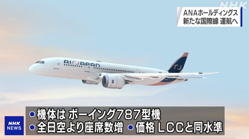 據報道,“AIR JAPAN”的客機將使用波音787,座位數比全日空的客機多一些,機票價格則設定為與廉價航空公司(LCC)同等標準。