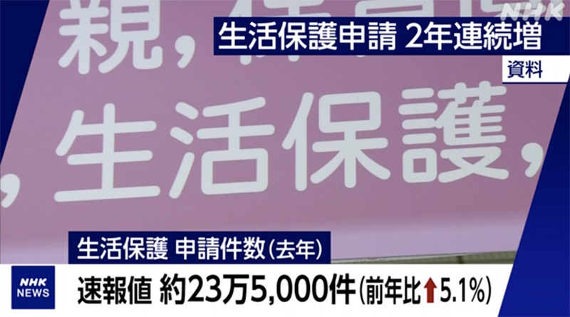 2021年日本的最低生活保障申請約有23萬5000件,增長5.1%。(NHK電視臺視頻截圖)