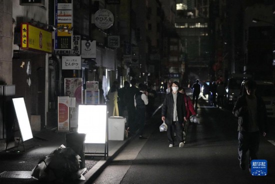 3月16日,地震導致東京市新橋附近的商業街停電。新華社/共同社