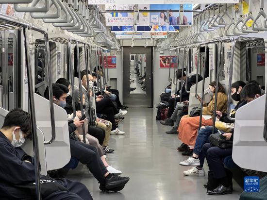 3月16日,日本東京JR橫須賀線因地震停車,乘客被困車廂中(手機攝影)。新華社發(孫佳林 攝)