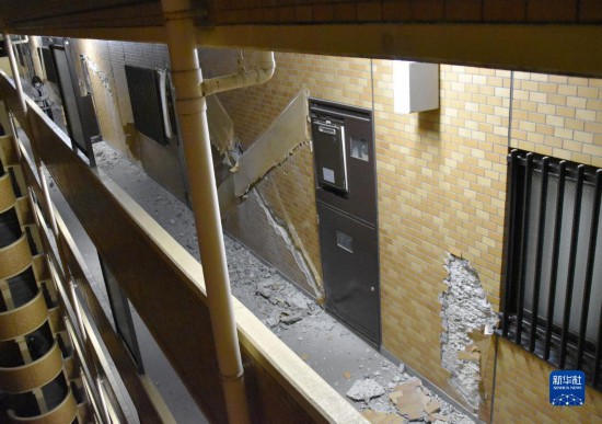 福島市一住宅墻體因地震受損(3月16日攝)。新華社/共同社