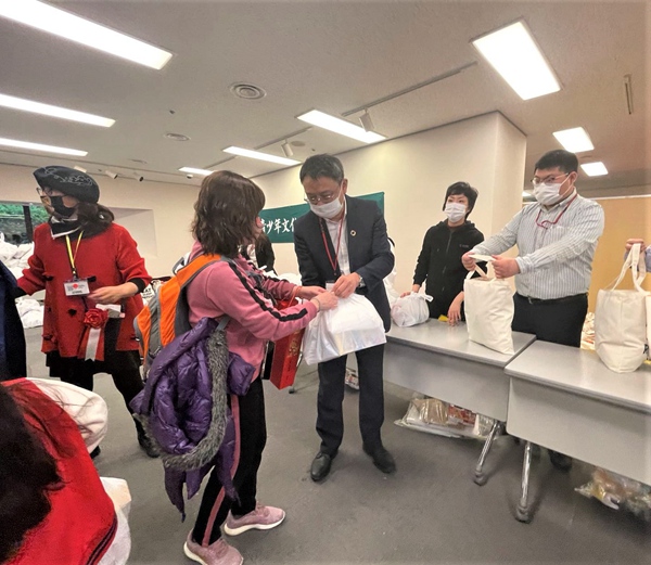 捐贈活動是由東京中國文化中心與日本日中青少年文化藝術交流協會共同主辦,在中國駐日本大使館統籌協調下,將口罩、酒精等防疫物資和大米、方便面、罐頭等生活用品,分發給留學生及在日同胞。