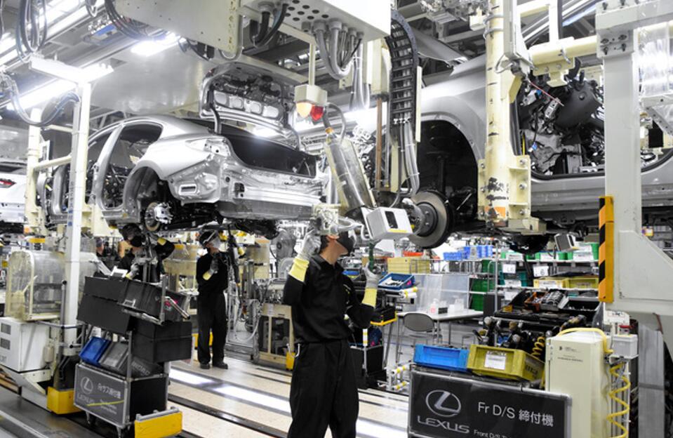 豐田位于福岡縣的宮田工廠生產線正在組裝雷克薩斯汽車。(圖片來源:《朝日新聞》)