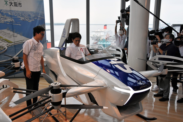 去年9月,大阪府知事吉村洋文試乘“空中汽車”。(圖片來源:《朝日新聞》)