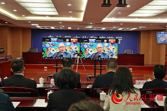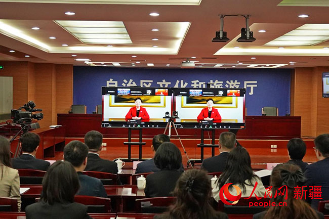 啟動儀式上,新疆維吾爾自治區文化和旅游廳黨組書記侯漢敏視頻致辭。人民網 李欣洋攝