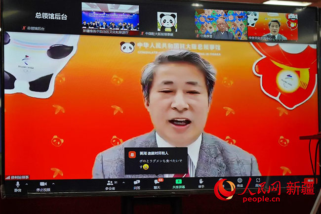 新疆舞蹈演員與日本網友線上互動。人民網 李欣洋攝