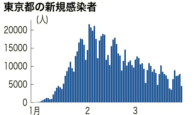 3月29日,東京都新增確診病例7846例,單日新增與上周二相比增長了1.2倍。截至29日,東京都最近一周的日均新增確診病例數為7181.1例,是前一周的105.1%。