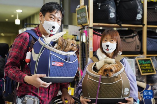 4月1日,人們帶著寵物犬在日本東京國際會展中心參加東京國際寵物展。新華社記者 張笑宇 攝