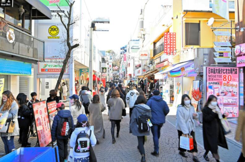 1月22日,東京開始實施“防止蔓延等重點措施”后的第一個周末,原宿的竹下通大街仍然人來人往。(圖片來源:《朝日新聞》網站)