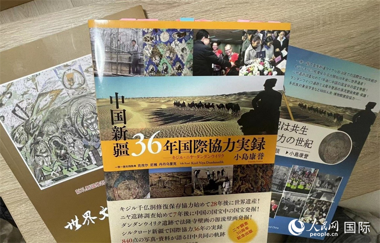 小島康譽出版的眾多介紹新疆的系列圖書。人民網 吳穎攝