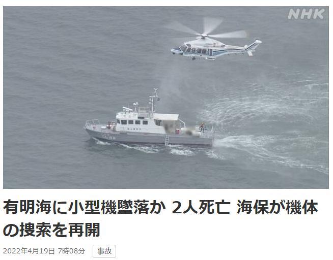 日本國土交通省表示,這架飛機從熊本縣起飛,機上共搭載3人。