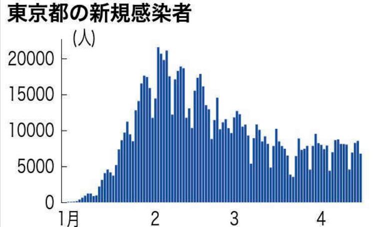 4月18日,東京都新增確診病例3479例,與上周一相比減少了1083例,連續七天呈下降趨勢。截至4月17日,東京都最近一周的日均新增確診病例數為6568.4例,是前一周的86.5%。