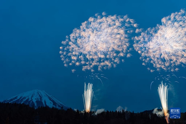 當日,“絕景花火”煙花大會在日本山梨縣南都留郡鳴澤村舉行。約10000發煙花綻放在富士山腳下,為觀眾帶來絕美體驗。