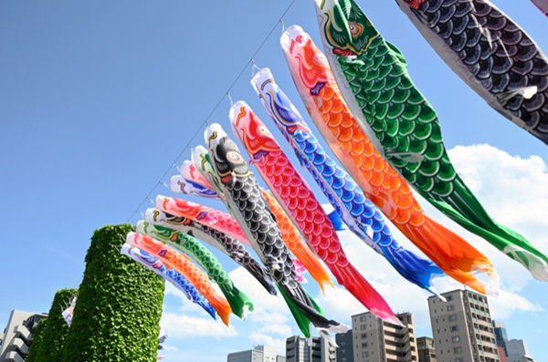 5月5日是“日本兒童節”,很多地方懸掛起鯉魚旗。(圖片來源:《朝日新聞》)